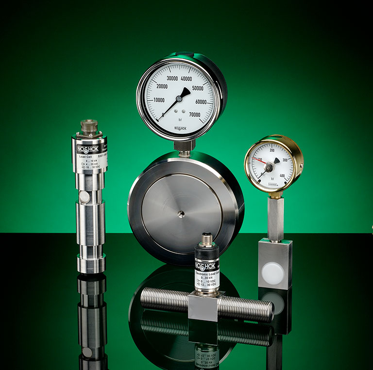NOSHOK offers mechanical and electronic force measurement instrumentation, including hydraulic load cells, load pins, tension and compression force transducers, S-type force transducers, custom force sensors, and chain hoist and weld force test kits. Applications for NOSHOK Force Measurement Solutions include industrial weighing, spot welding, printing equipment, control systems, robotic equipment, extruders, vices, weight and level measurement for tanks, bunkers and silos, measurement of bearing and support forces for bridges (supporting framework and lifting gear), rock thrust measurement in fore poles in mines and tunnel construction, shear force measurement and many more.