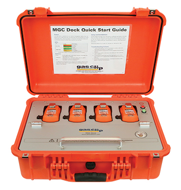 The Gas Clip Technologies MGC Dock is an all-in-one stand-alone docking station designed for maximum testing efficiency and portability. It tests up to four detectors simultaneously, reducing the testing time and gas usage.
